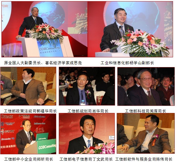 年会邀请到来自工业和信息化部、发改委等主管部委领导以及50余位来自重点省市领导,与业内企业领袖一道,全面梳理新一代信息技术等战略性新兴产业发展的路径、现状及趋势,寻求战略性新兴产业发挥经济转型升级引擎作用的着力点,帮助政府与企业理清产业发展方向,准确把握市场发展趋势,使您在未来的竞争中能够抢占先机。(2011届回顾,部分嘉宾)