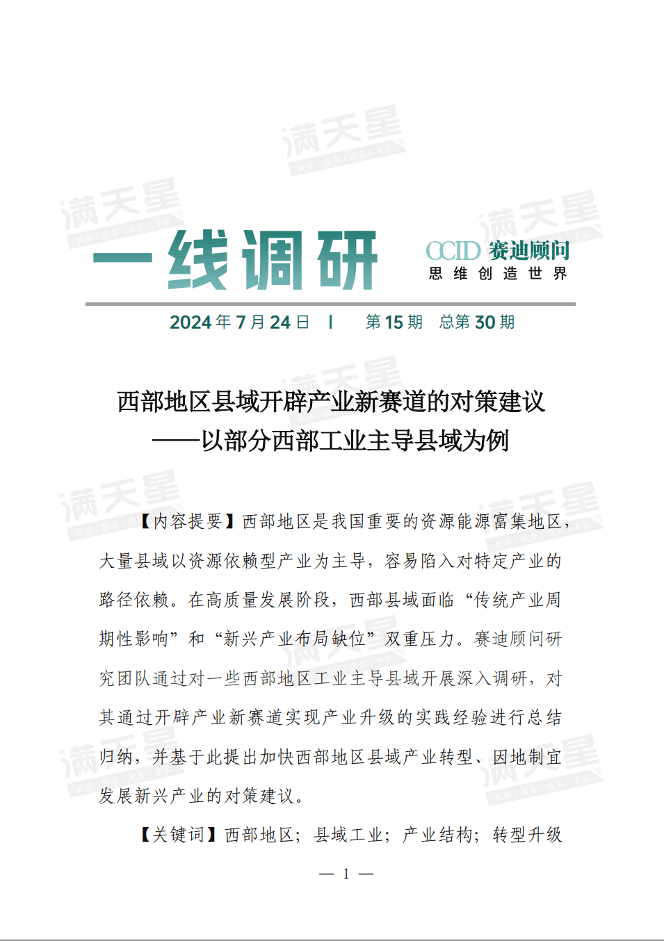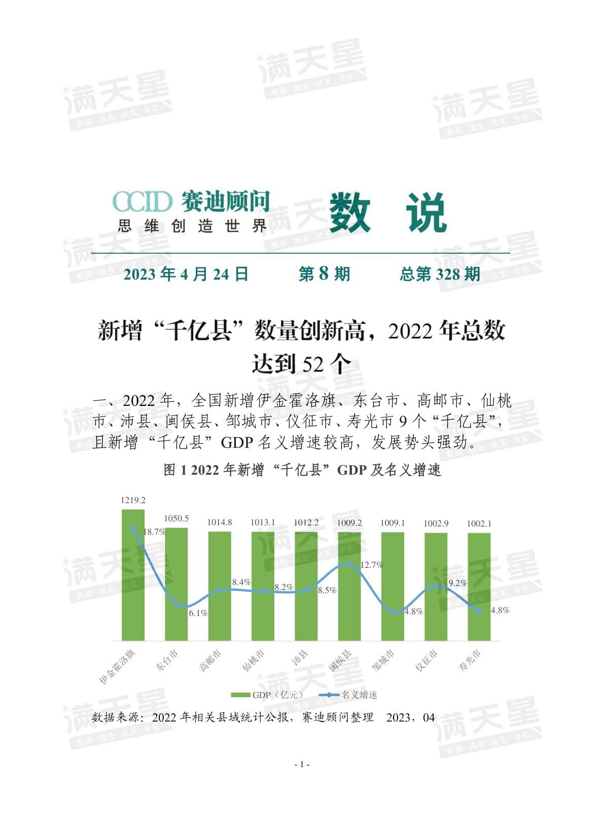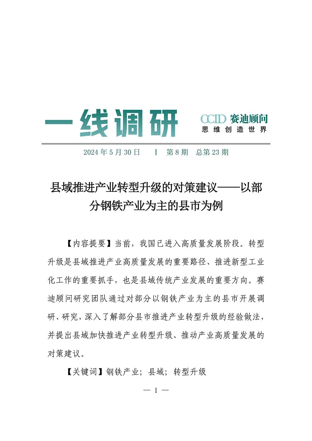 该报告共分六大章节,重点关注千亿县、工业大县和百 强县发展特点和模式,通过“事”说、“数”说、“道”说展 示县域发展图景,并有针对性的选取国内外县域经济发展实 践案例总结经验模式,同时针对县域新型工业化、新型城镇 化、城乡融合等重点课题提出五大发展方略建议。