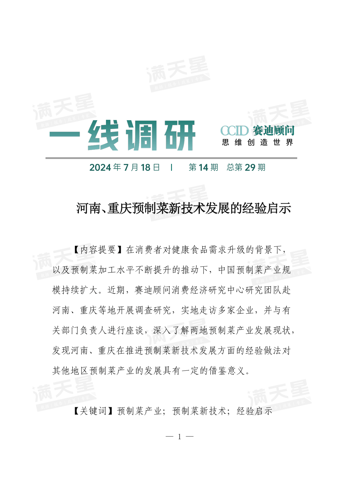 为响应国家新型工业化战略部署及国家市场监管总局、工信部、农业农村部等六部门“支持地方推进预制菜产业集聚区建设”要求,赛 迪顾问联合中国商业联合会、中国食品药品企业质量安全促进会、中国烹饪协会,以“全链创新·预制未来”为主题,聚力探寻食品产业高质 量发展新要求、新引擎、新路径,筹划举办“食品产业新型工业化论坛暨2024预制食品(预制菜)产业基地生态大会”。