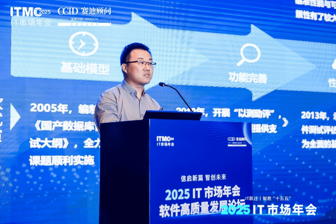 中国软件评测中心信发事业部技术总师吕韬作了题为《“以测促评、以测促研”保障基础软件高质量发展》的主题演讲。基础软件是数字经济发展的底座,其性能与稳定性直接关系到整个用户信息化体系的效率。软件测评服务通过系统化验证与评估,为基础软件的技术攻关、功能完善与产品迭代提供方向依据与技术支撑,助力基础软件高质量发展。