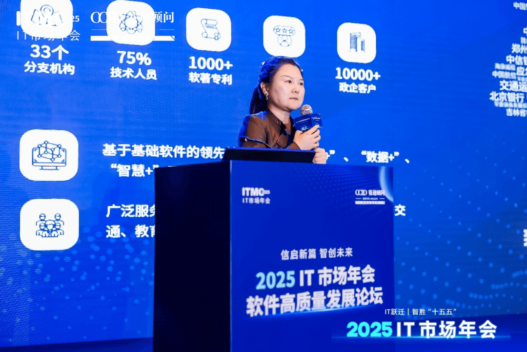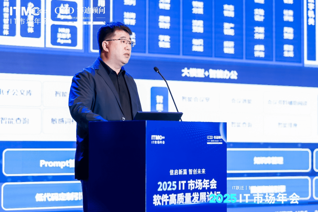 4月25日,2025IT市场年会“信启新篇,智创未来——2025软件高质量发展论坛”在北京成功举办。本次论坛由赛迪顾问股份有限公司主办,邀请了软件与信息服务业领域的学界专家、厂商代表、政府侧企业侧代表性用户等共同深入研讨,旨在系统总结中国软件产业发展现状,总结先进经验,锚定技术方向,发现未来需求,把握核心场景,打通供需堵点,提炼实践案例,参会人员针对如何更好发挥软件在新型工业化中的引擎作用,推动中国软件与信息服务业高质量发展进行了深度分享。